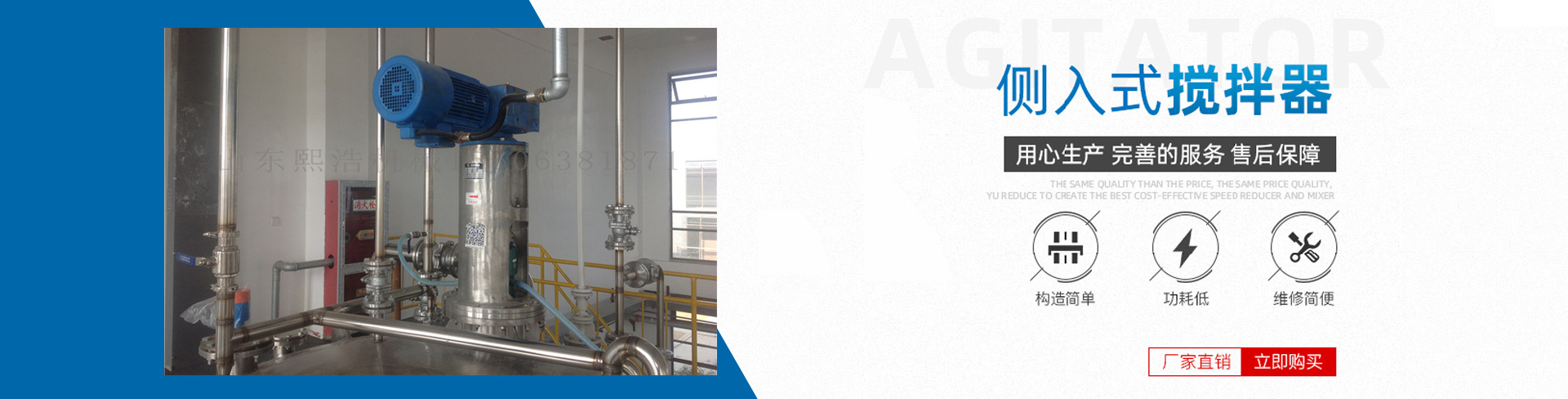 側入式攪拌器:罐體側壁成一定角度安裝;傳動軸和攪拌軸于一體,增強了軸的穩定性,降低了安裝要求,便于安裝、維護和檢修;采用高···